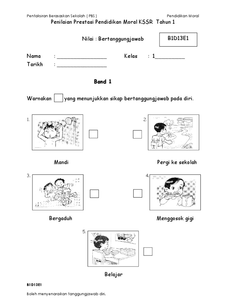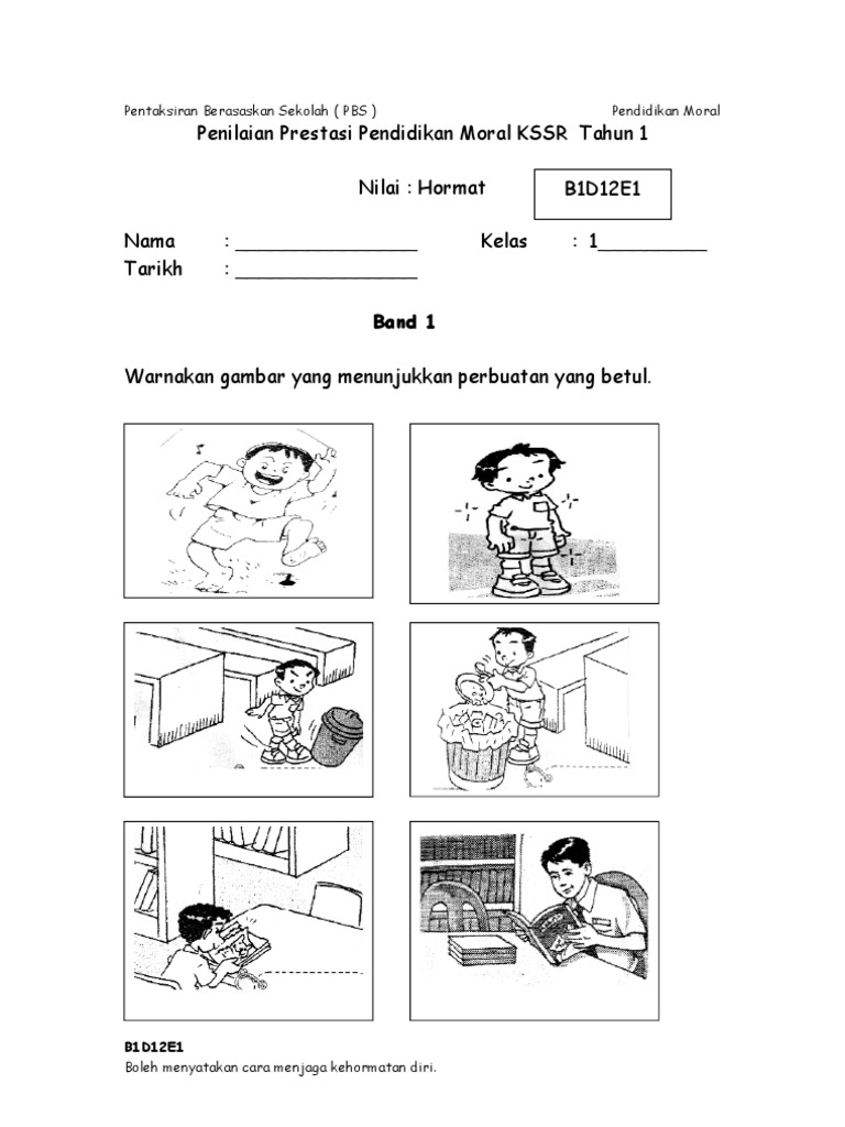 Pentaksiran berasaskan sekolah pbs. Cikgu rr rizza rashed mata pelajaran. Moral Tahun 1 Worksheet.